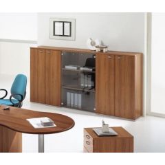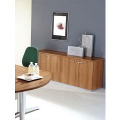 De half hoge dressoirkast verkrijgbaar met twee houten deuren (melamine afgewerkt) of met glazen deuren. Standaard wordt de kast geleverd zoals op de foto te zien is, op aanvraag is deze naar wens aan te passen. De kast is van zeer goede kwaliteit en heeft een lange levensduur. In de kast zitten standaard 2 legborden zodat de kast praktisch ingedeeld kan worden. Met een houten dressoir geeft u uw kantoor of thuiswerkplek een unieke en stijlvolle uitstraling.